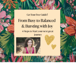 The Busy to Balanced & Bursting with Joy 4 Step Guide – is a great way to start the journey. With this easy 4 step guide you can create a little space and clarity that will jump start you toward success and ease.